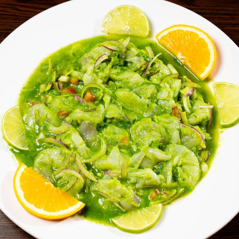 With Tilapia $20.99 • Made with cooked shrimp marinated in lime juice mixed with onions, tomatoes, jalapeños, and cilantro | Topped with avocado slices.
